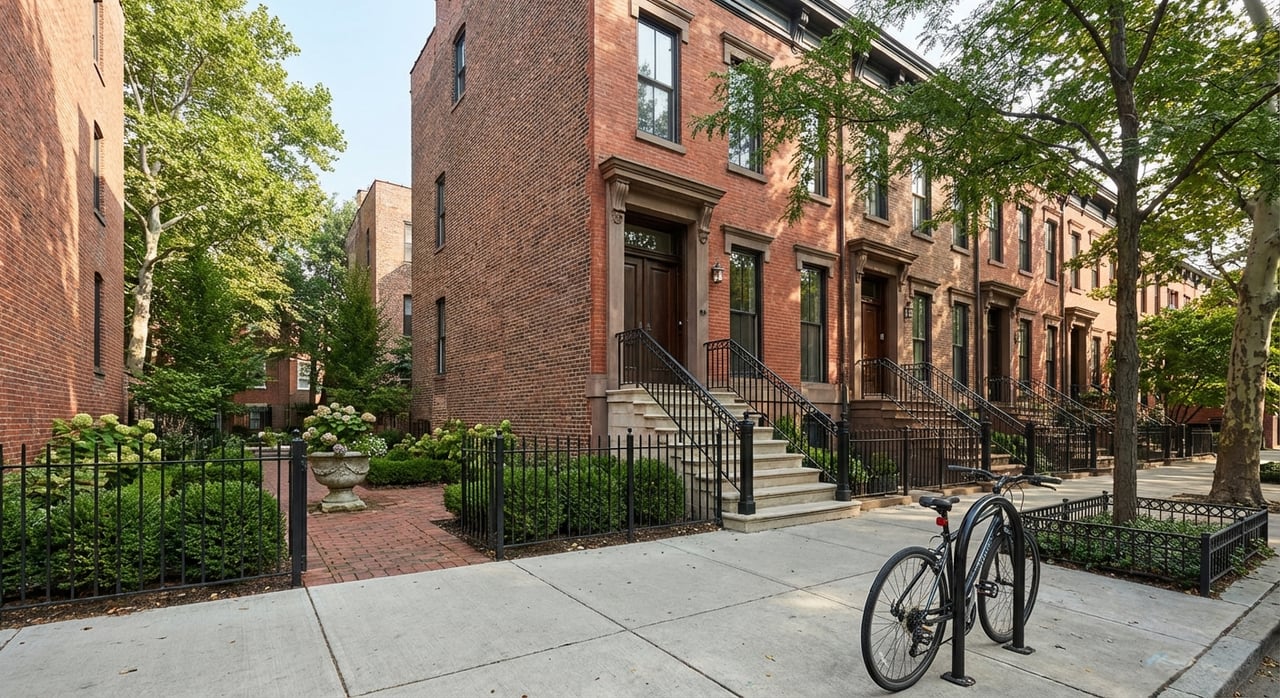 - Classic two- to three-story brick rowhouses